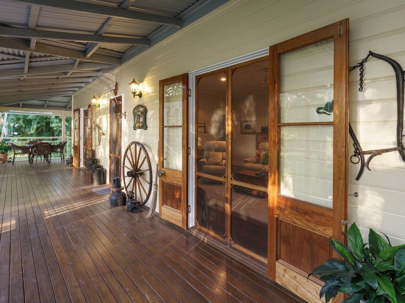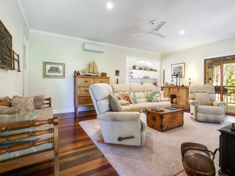 Polished hard wood timber floors and french doors leading to wide verandahs on the north, east and western sides of the home offer views over the surrounding gardens and plenty of spots to sit, relax and take it all in, a design that has worked beautifully with the queensland climate from early settler days.