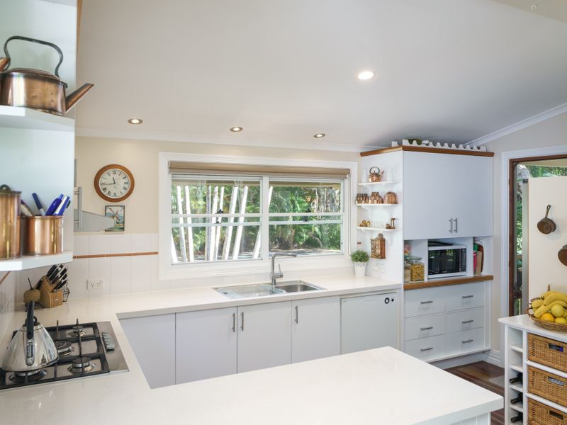 Privately nestled well back amongst landscaped lawns and tropical gardens, this picturesque Garth Chapman Queenslander offers practicality in a charming package.