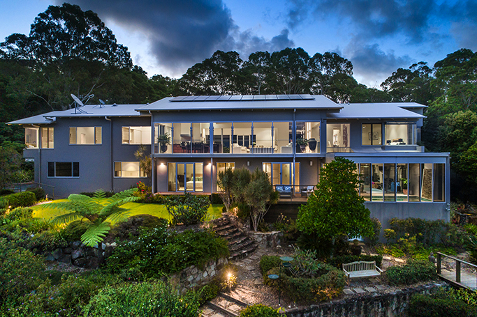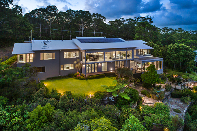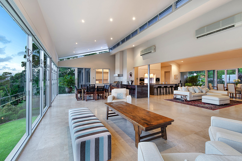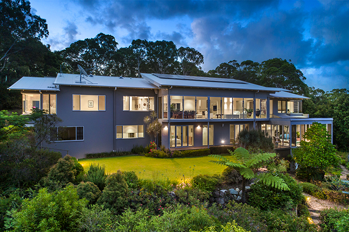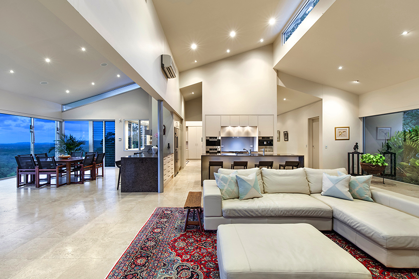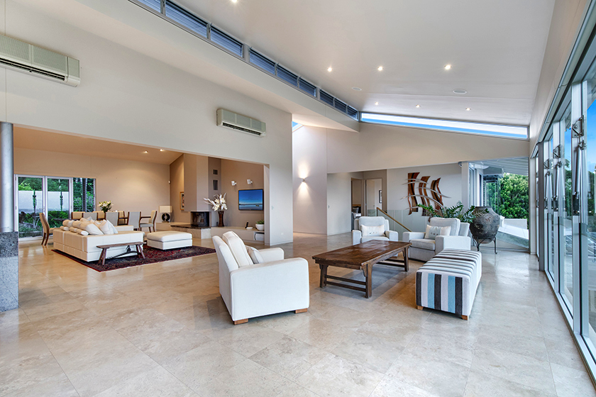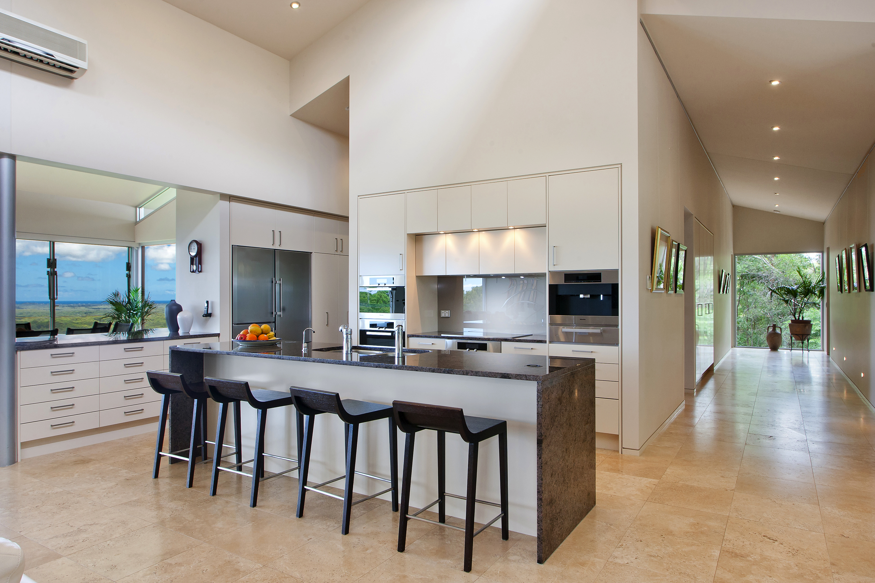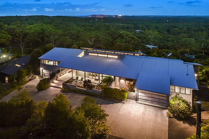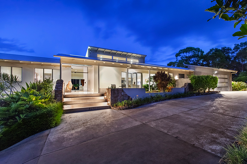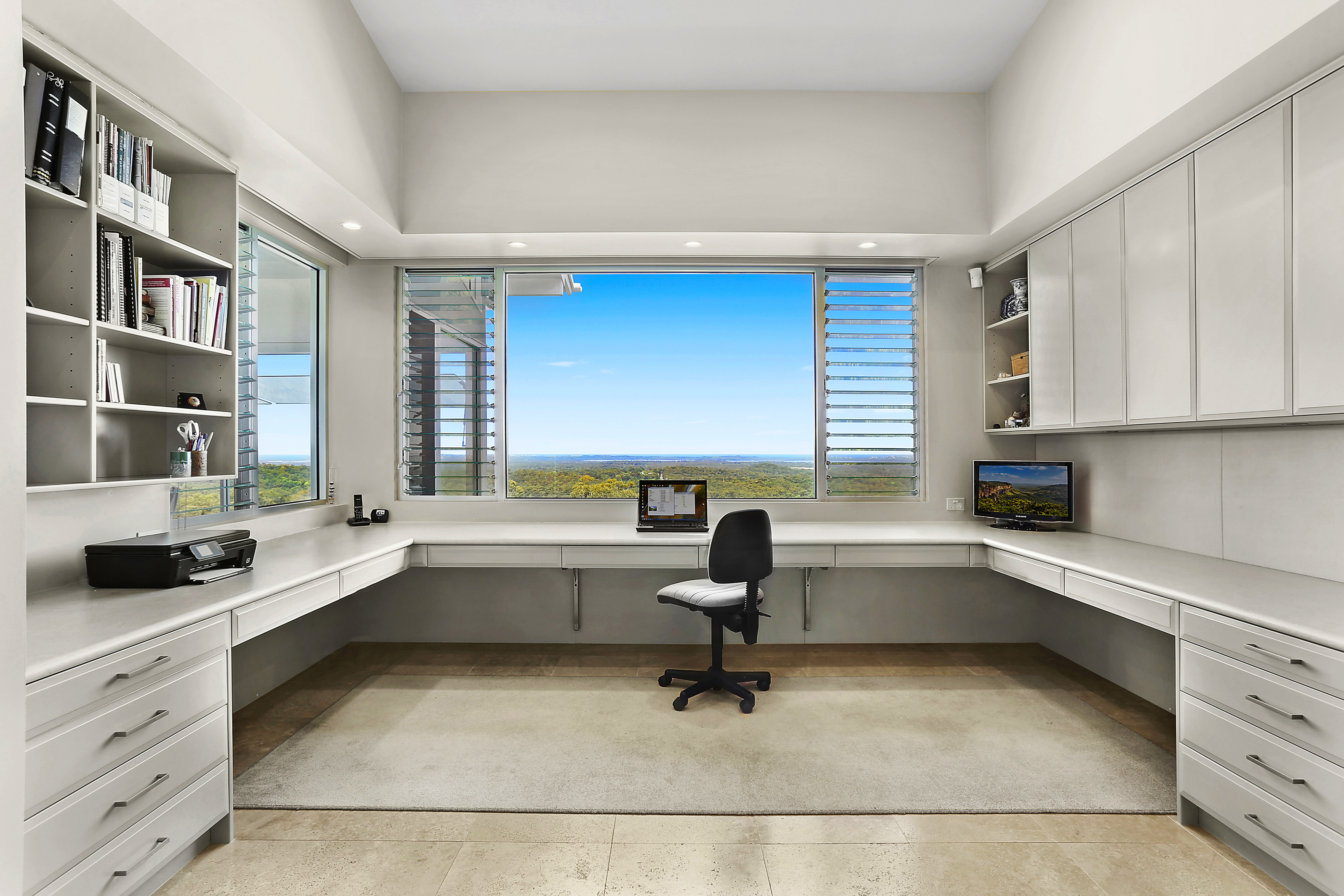 At the very top of exclusive Tinbeerwah, with incredible panoramic views taking in Noosa Heads to Coolum Beach and the ocean beyond, this opulent home will inspire and impress. Built to the highest standards with quality travertine floors, high ceilings and extensive use of feature glass, relish in light filled luxury as the glorious views are drawn inside. Easy circular driveway access leads to a pivoting glass front entry door where the journey begins. Neutral tones and clean lines are the norm and your eyes are drawn to an expansive full height glass wall which showcases the green and blue panorama.