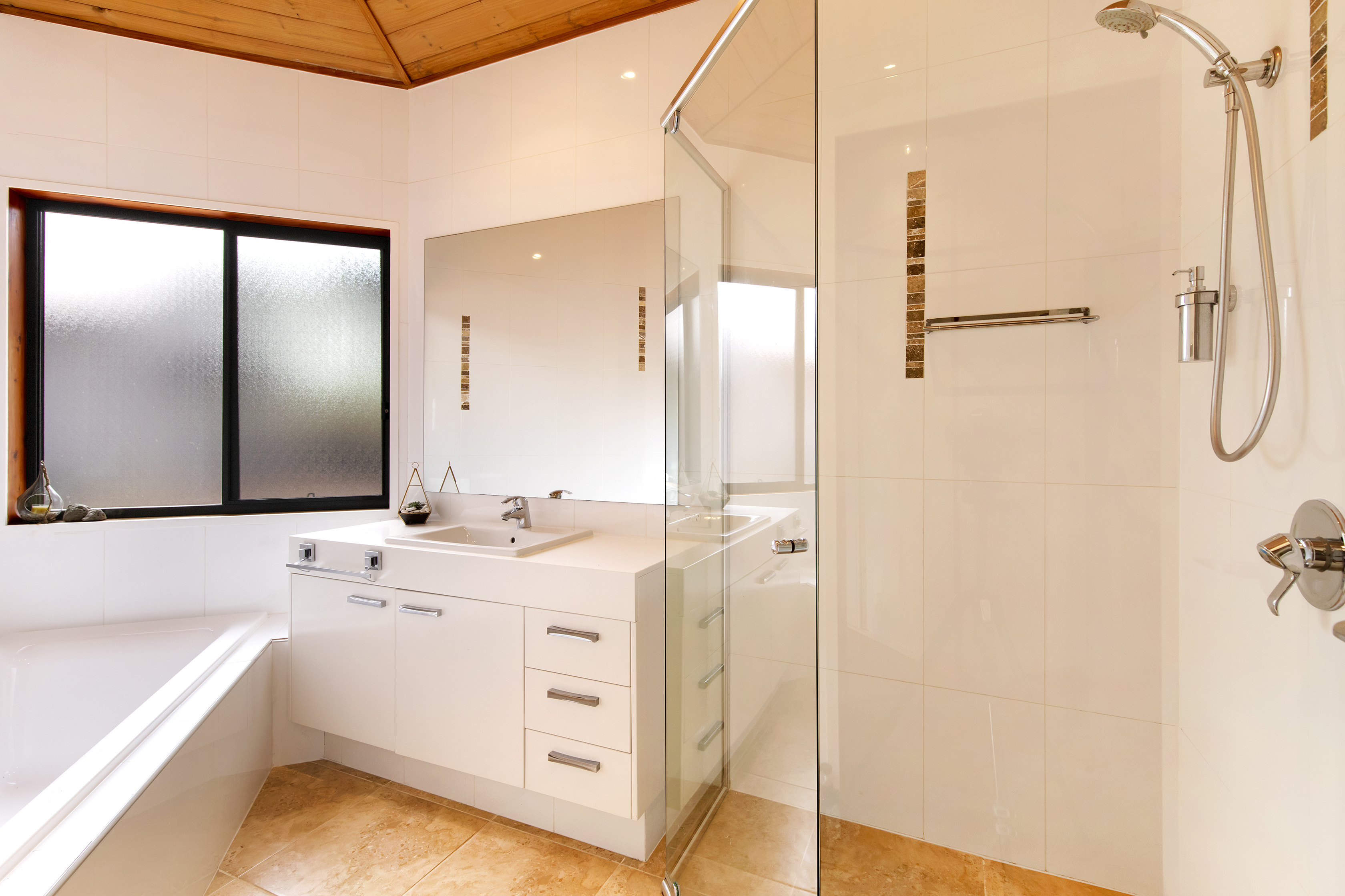 One adjoining wing hosts two generous bedrooms with bathroom and separate toilet. The other interconnected wing houses a beautiful master bedroom with a grandiose ensuite inclusive of a heated floor and towel rails plus a walk-in wardrobe. It has its own under roof outside sitting area to enjoy a relaxing evening drink with direct access to the pool.