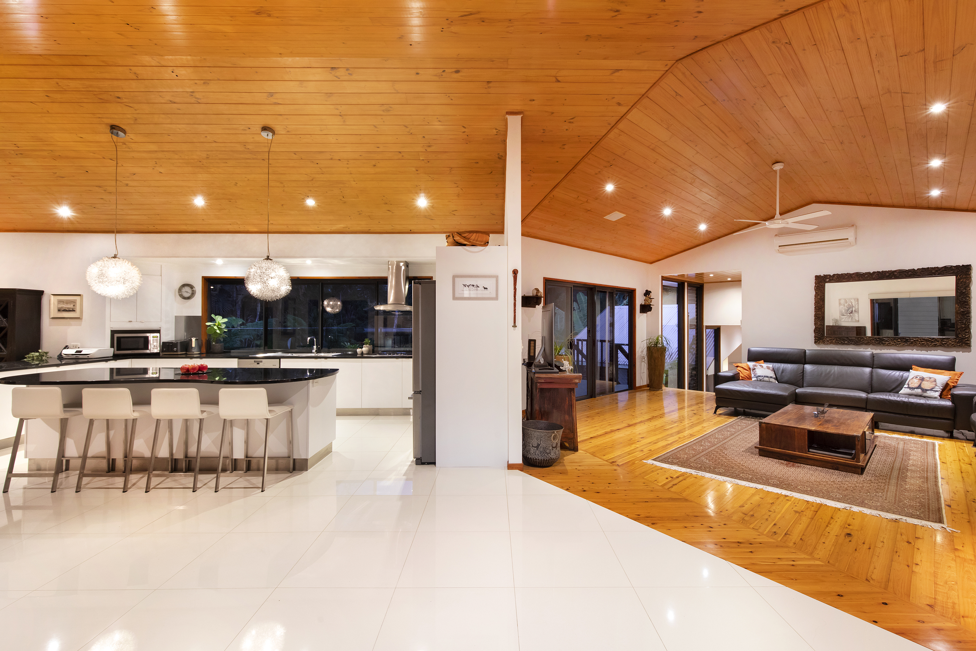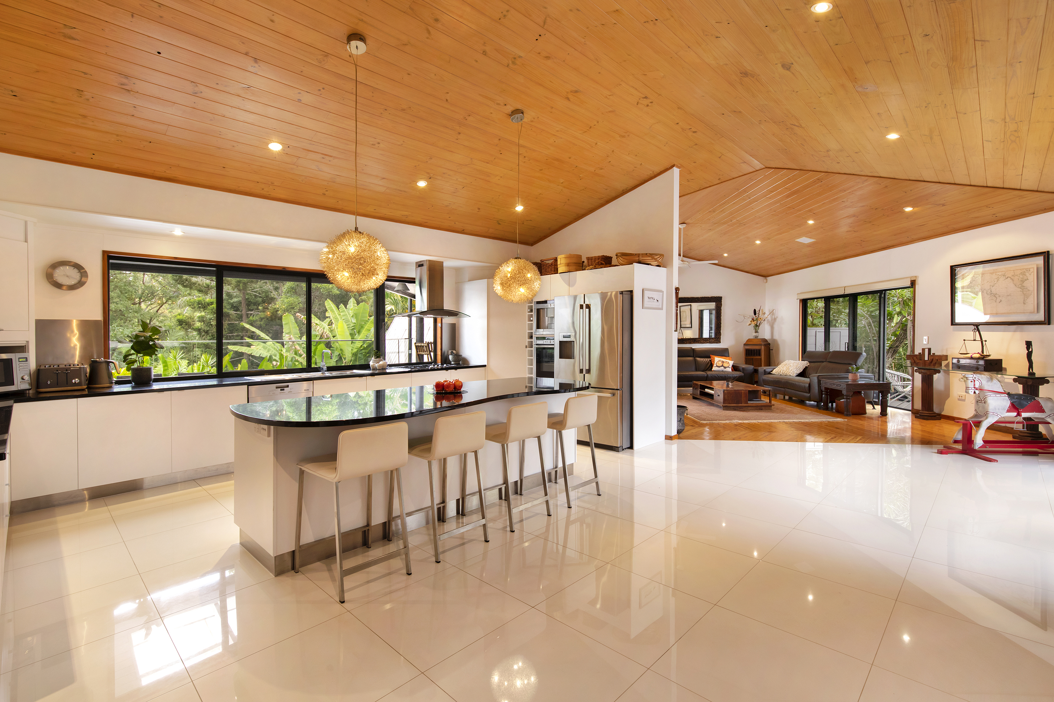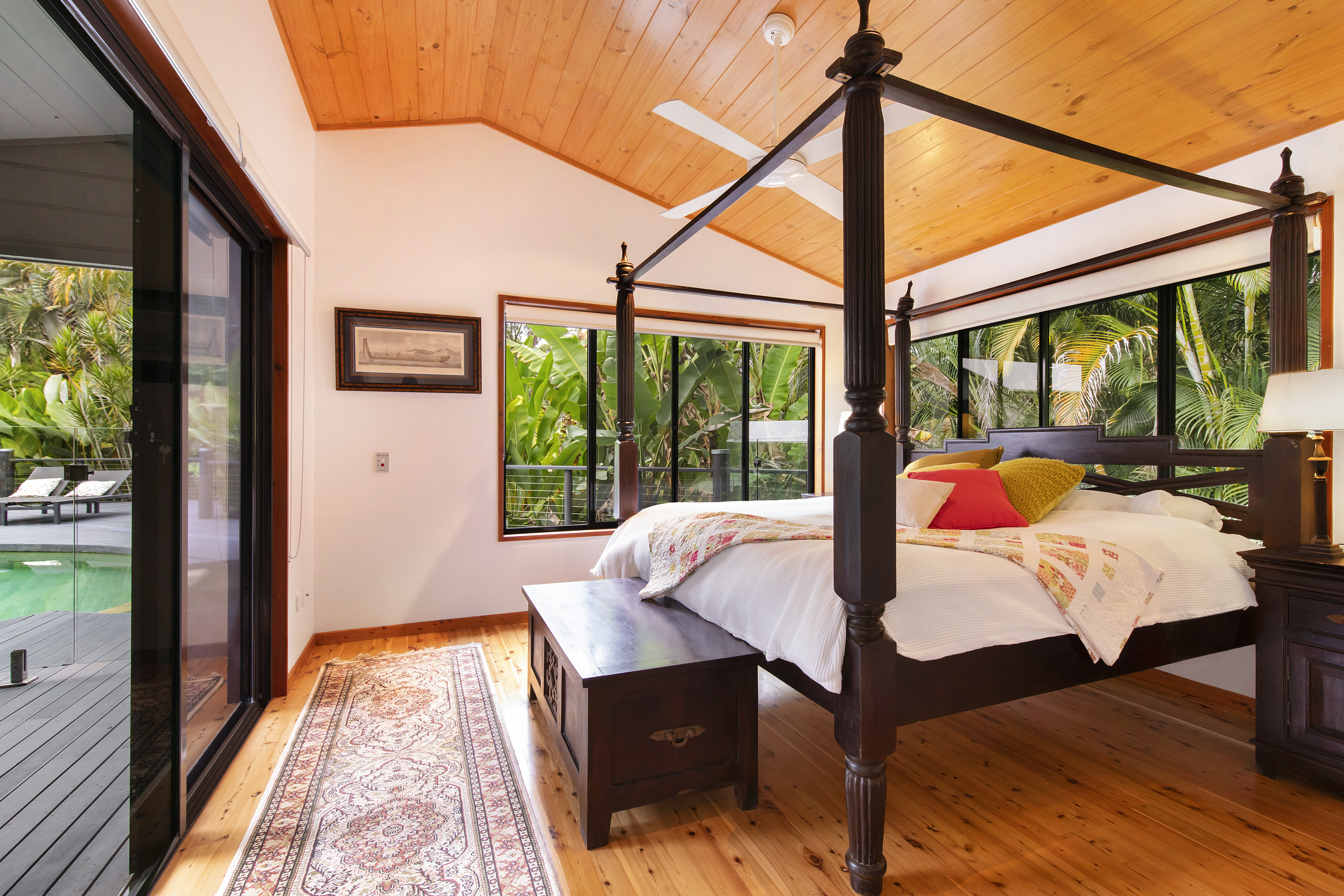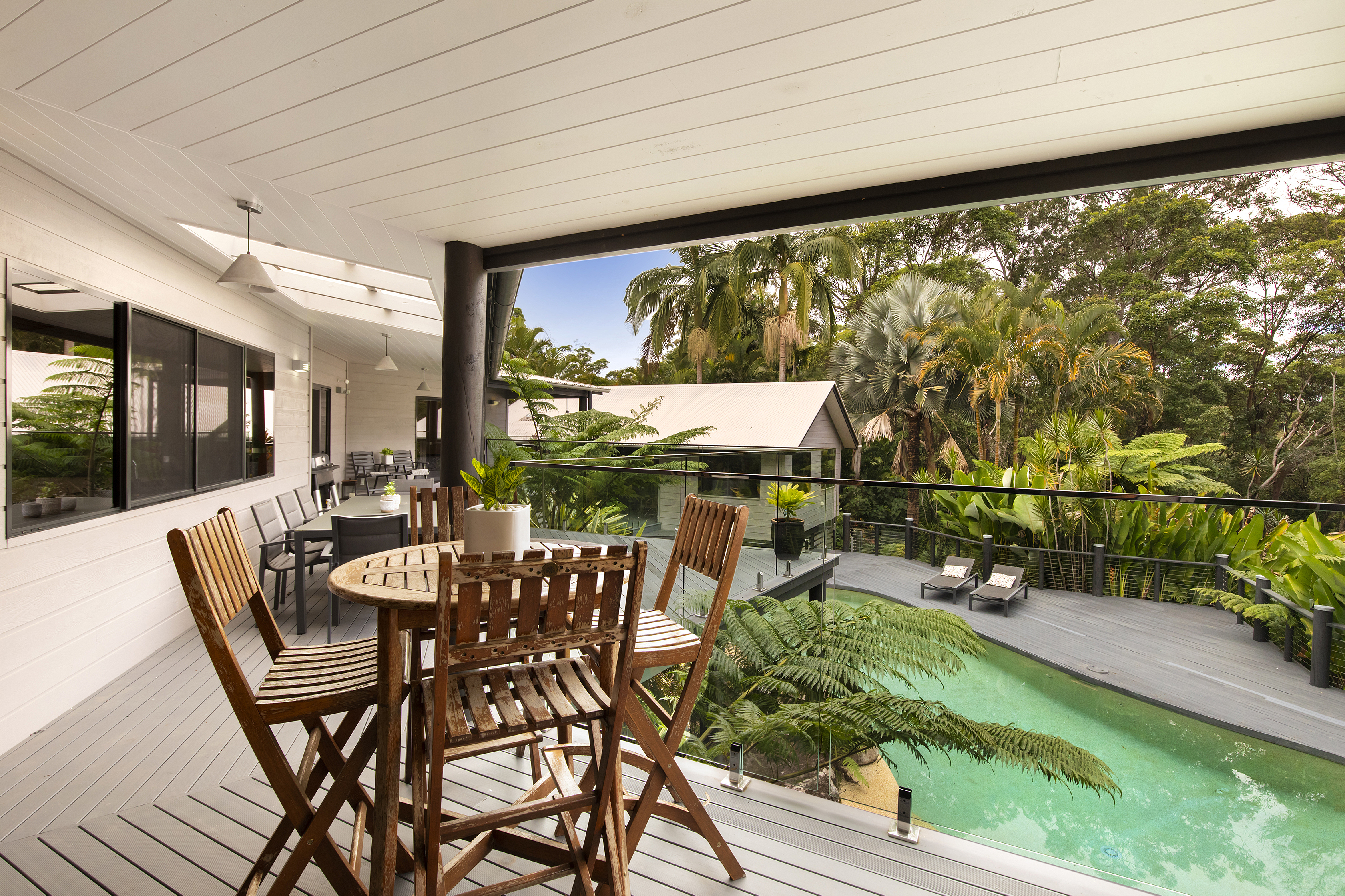 All areas open to the outside to catch the summer breezes. A large covered verandah overlooks the pool and its tropical surroundings, ideal for entertaining or simply enjoy eating in the open.