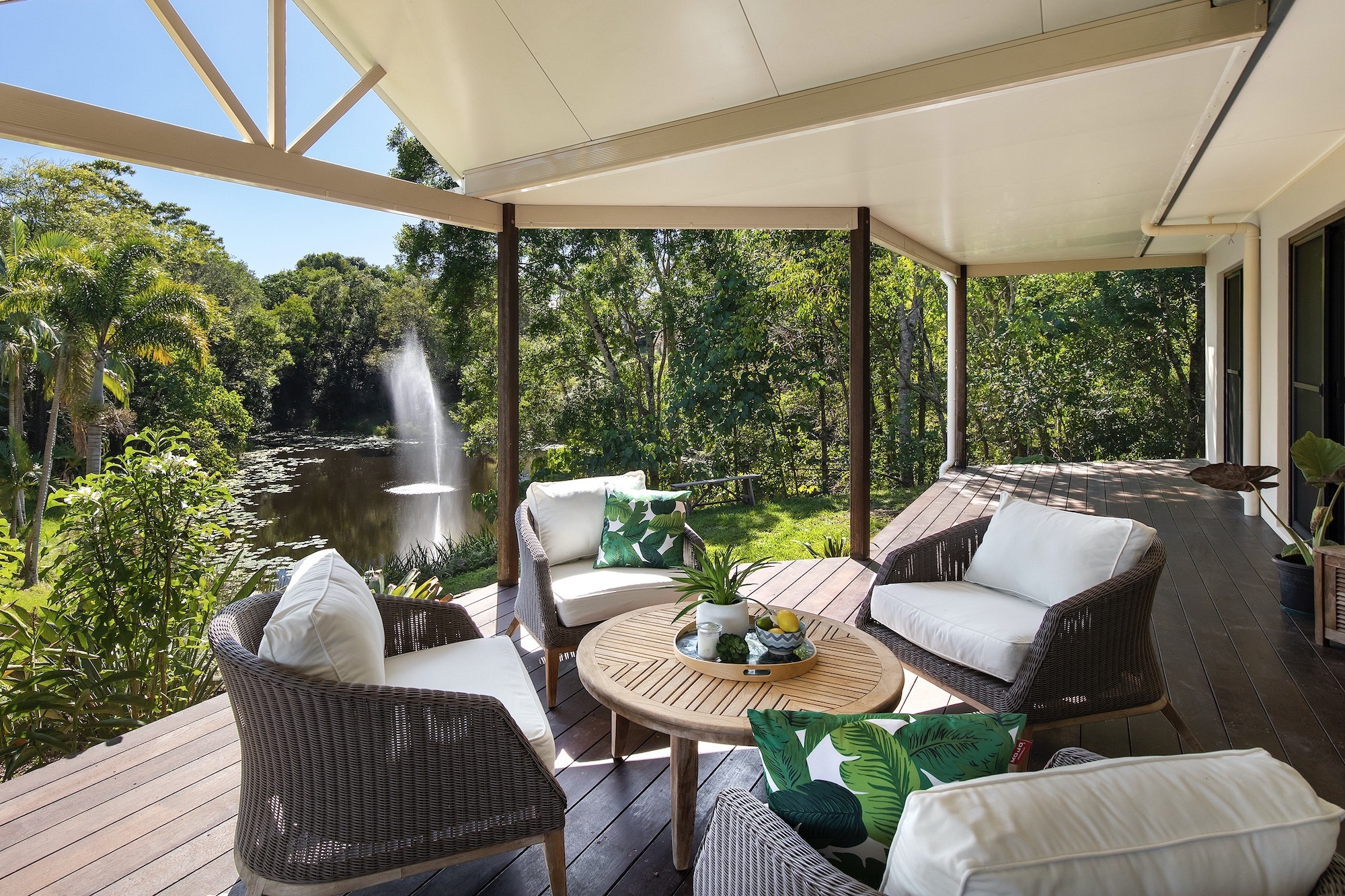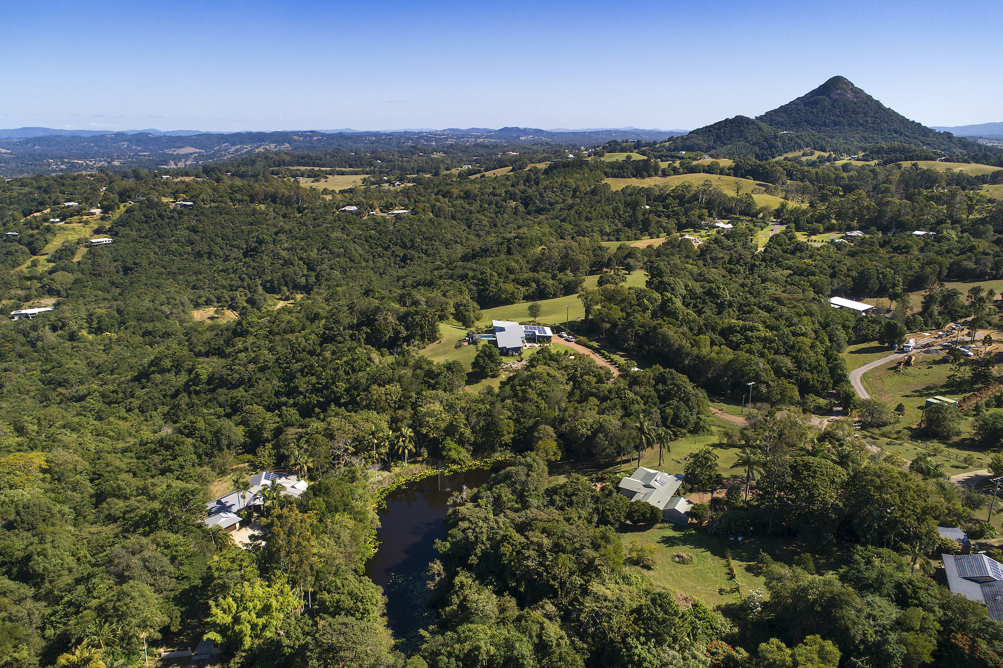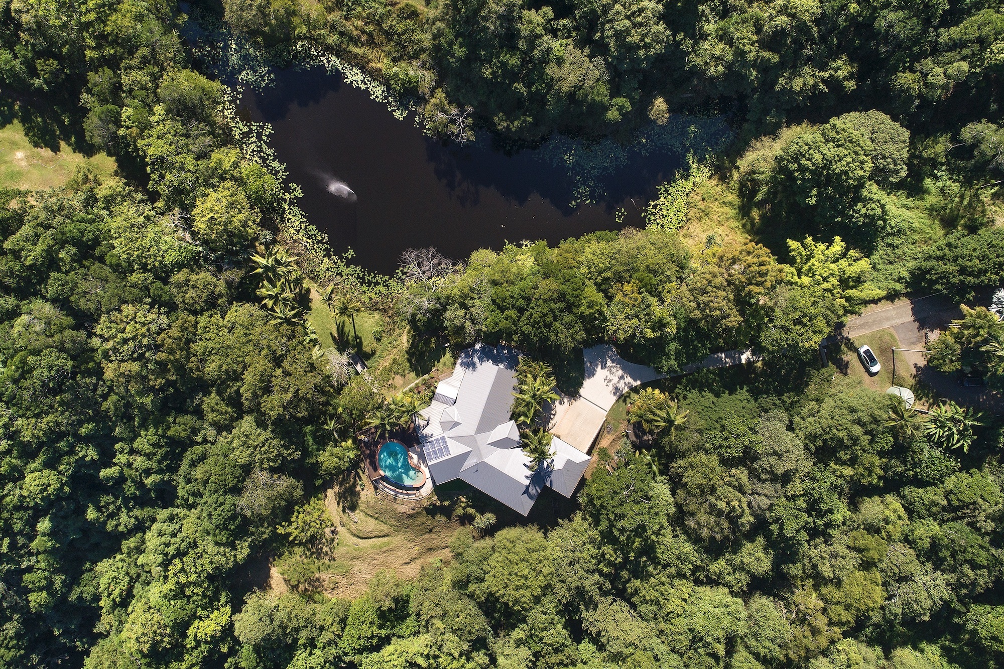 Set well back from the road on a very private 2.98 acres with far reaching mountain views in a tranquil setting outlooking a large lily lined dam stocked with Saratoga, Bass and more water than you’ll ever need.