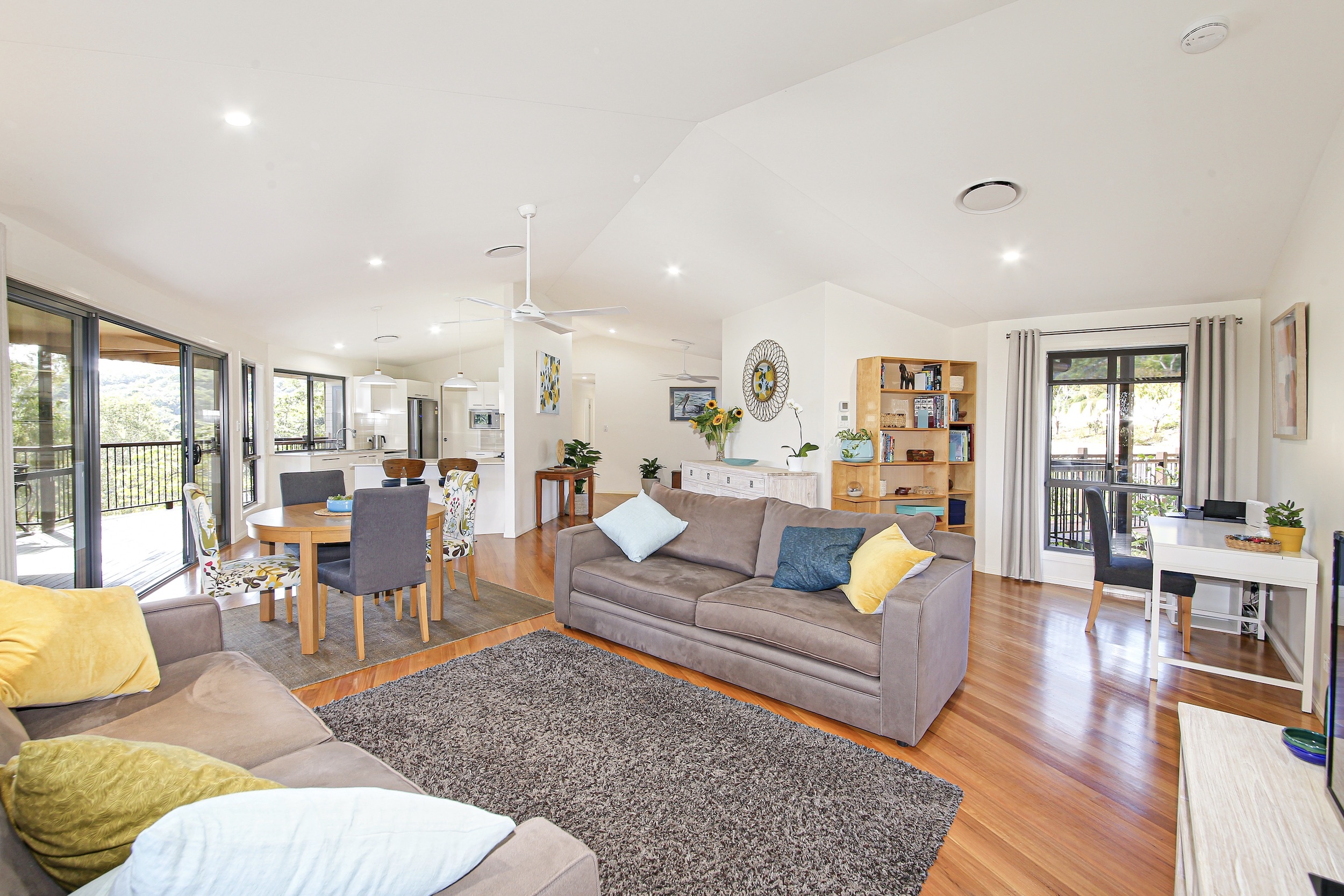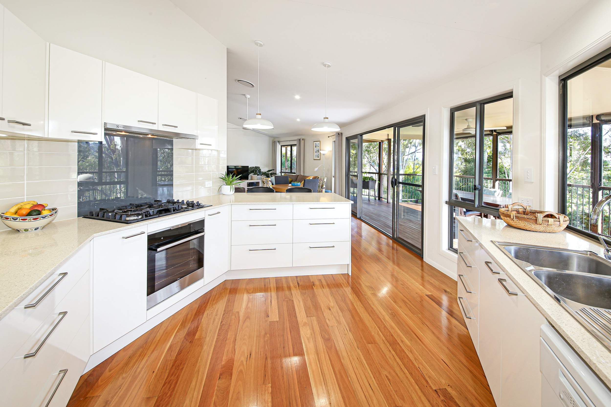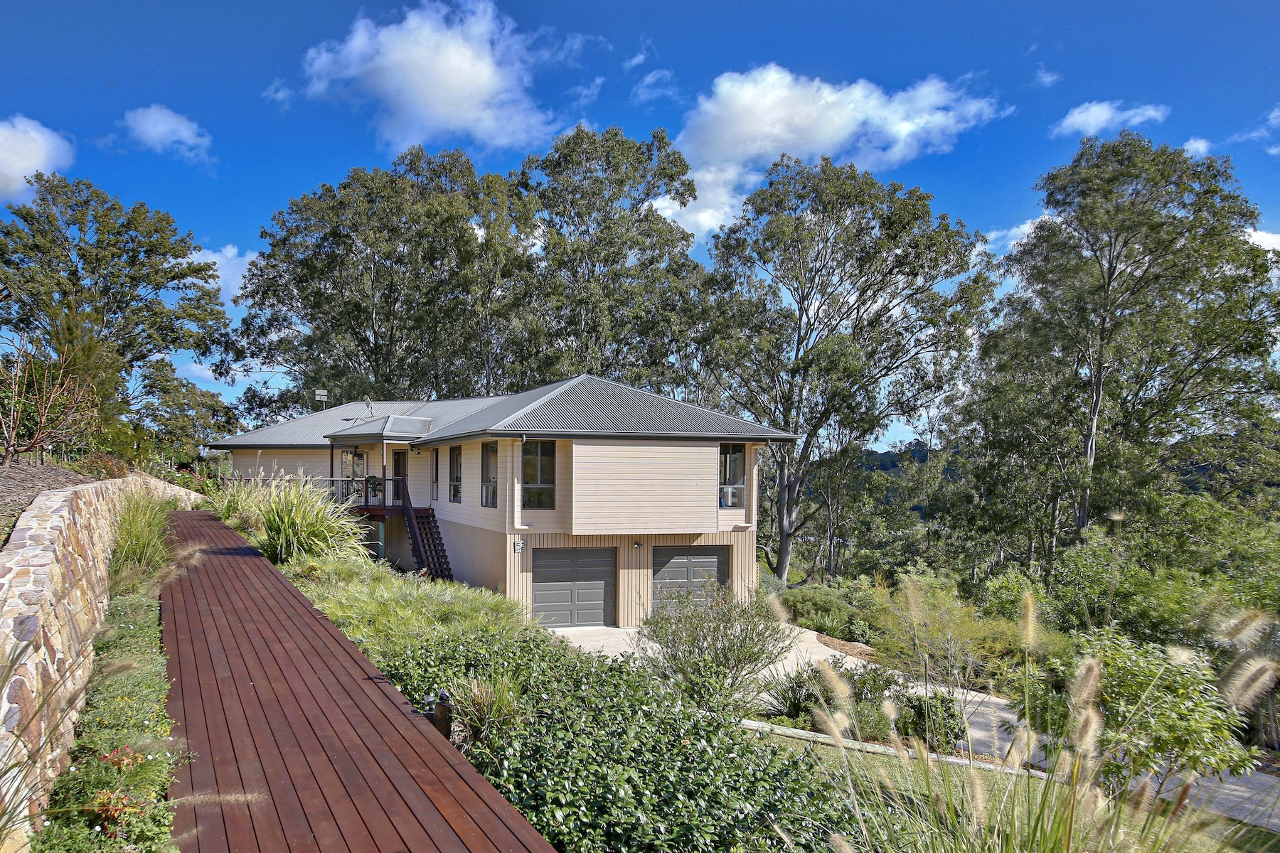 Sitting pretty on an acre of elevated land with filtered views through tree tops across the Noosa  Hinterland toward Mount Cooroy, this home offers many of the comforts we seek in a Hinterland property.