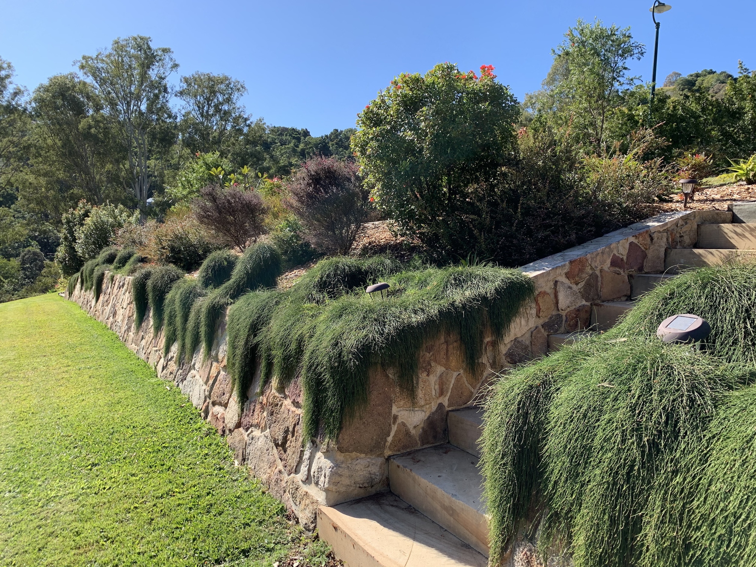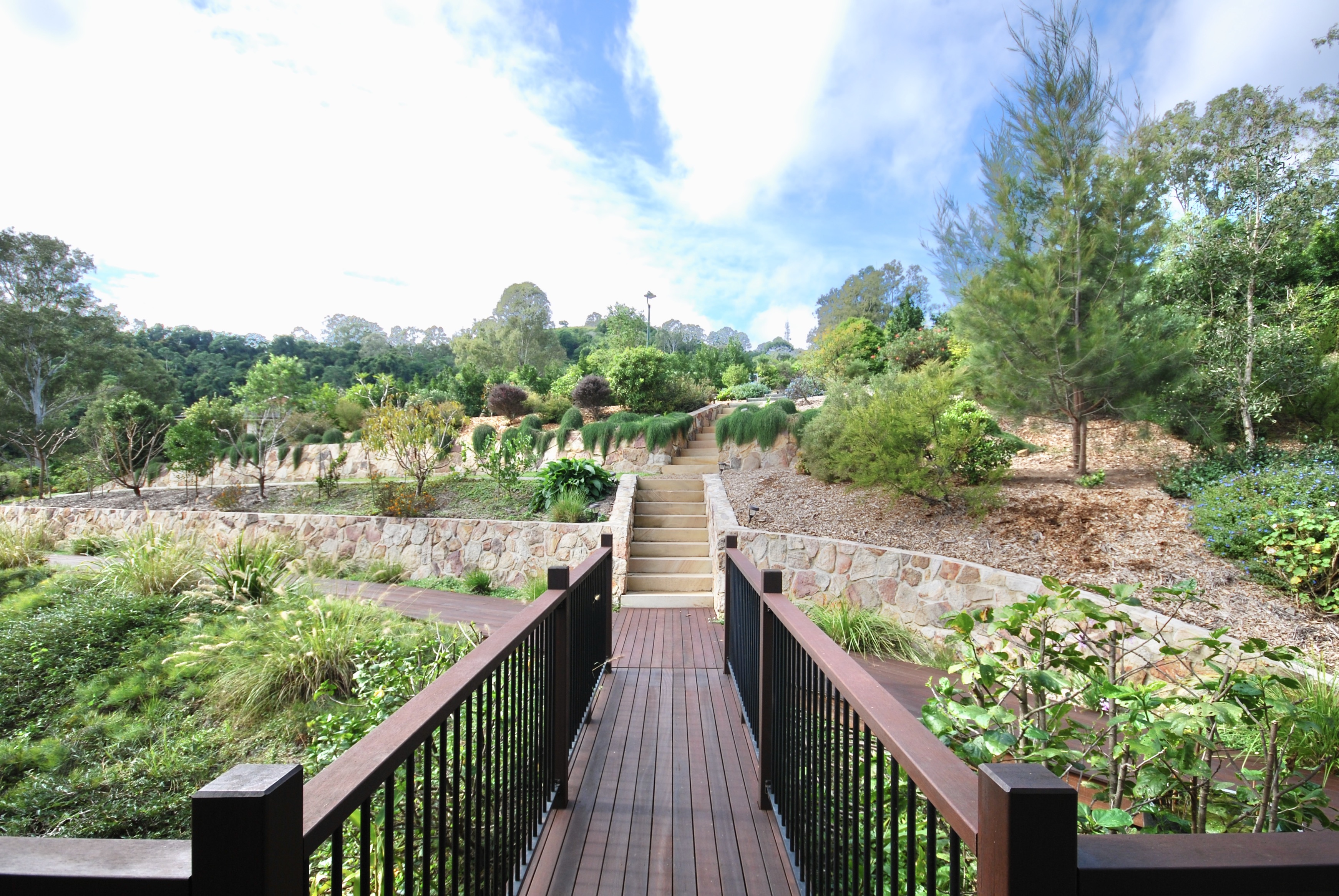 No expense was spared in the landscaping of this beautiful property with natural stone walls, flat grassed terraces, sandstone steps and timber boardwalks amidst easy care established gardens complete with frog pond, chicken coop and veggie beds