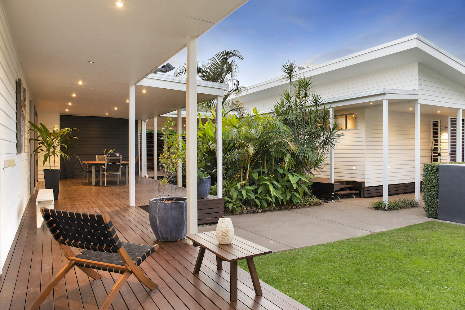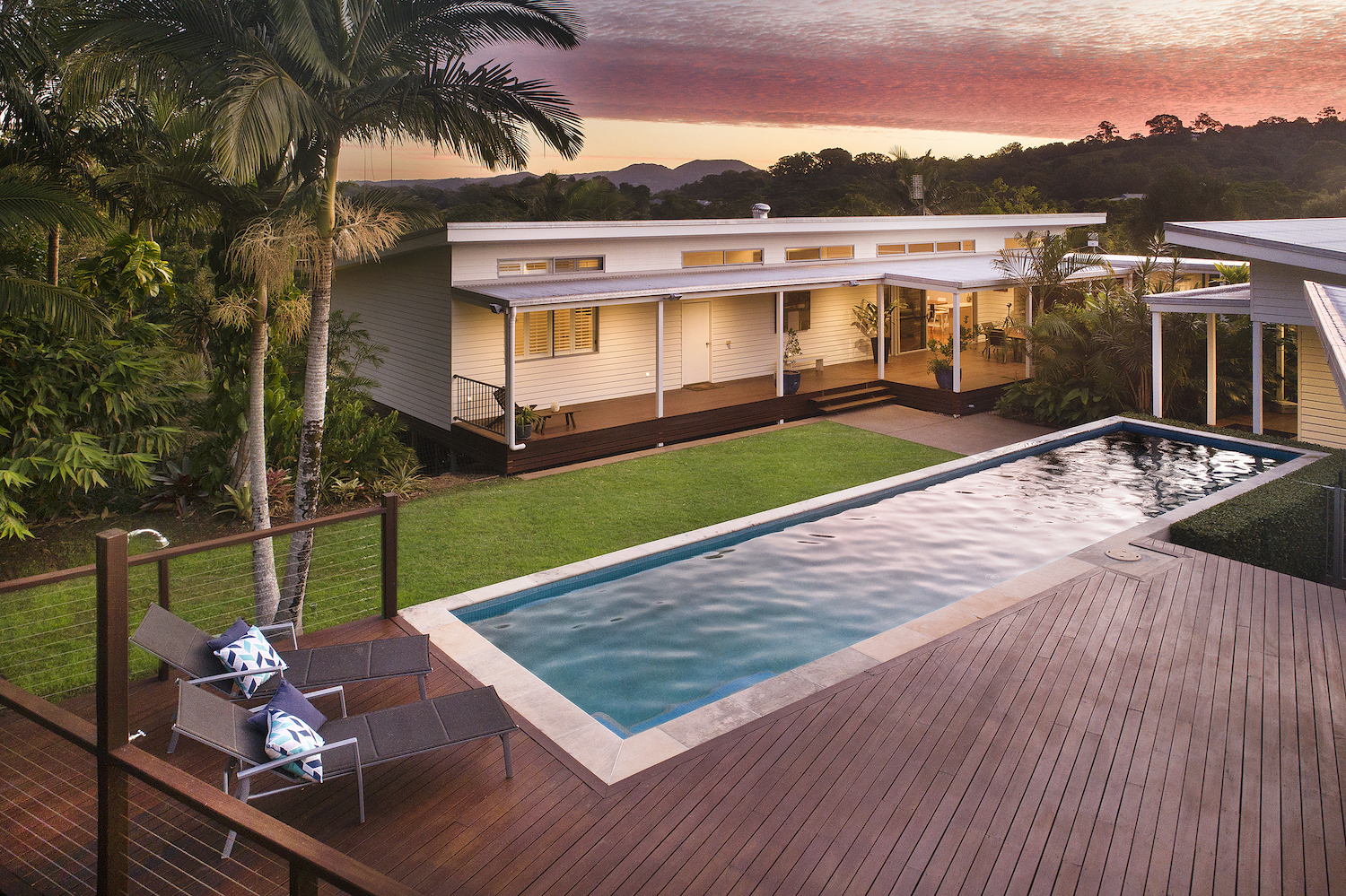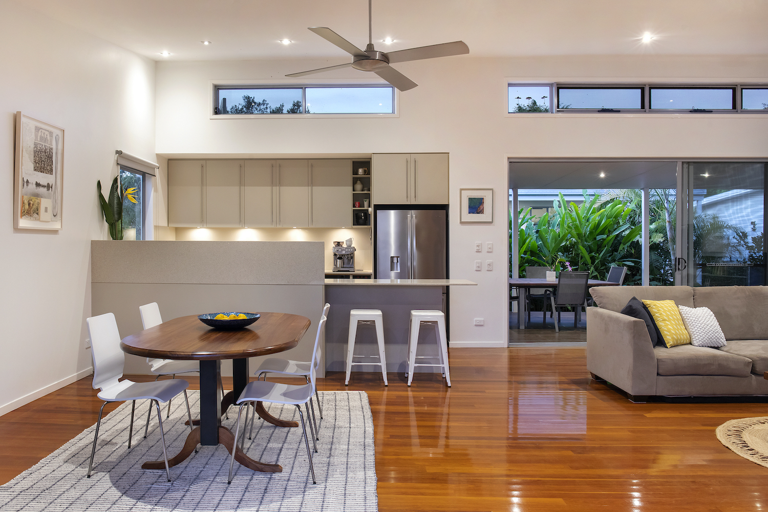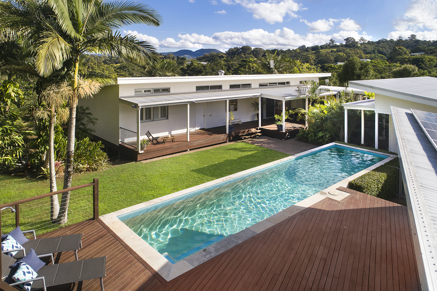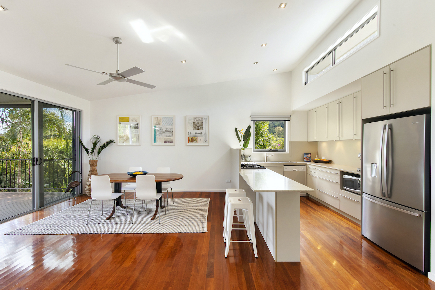 Enjoy the peace and seclusion of this well designed pavilion style home. Built to take advantage of the panoramic views, natural light and prevailing breezes. With soaring ceilings, Blue Gum floors and open plan layout, this home flows naturally to full length alfresco decks and a central interior courtyard deck surrounding a lush tropical garden, ideal for secluded undercover entertaining, whatever the weather.