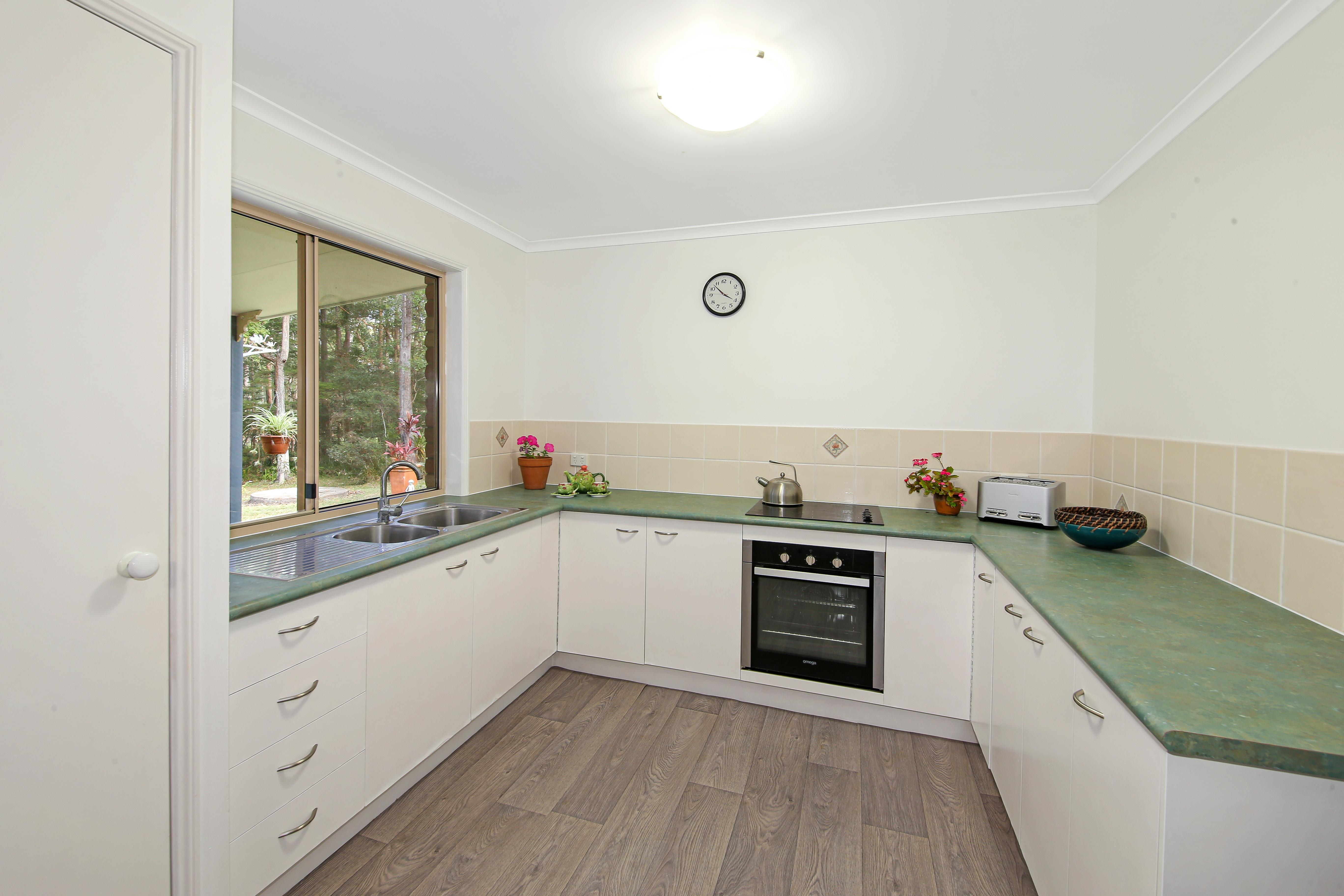 • Large kitchen with double sink, fan forced oven, ceramic cooktop