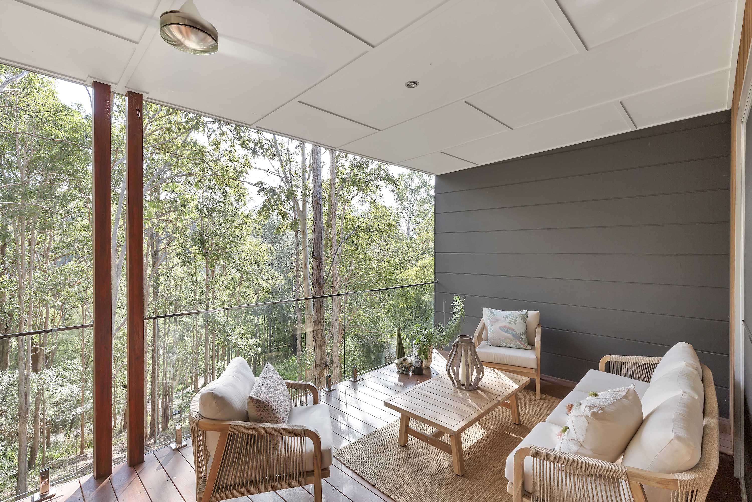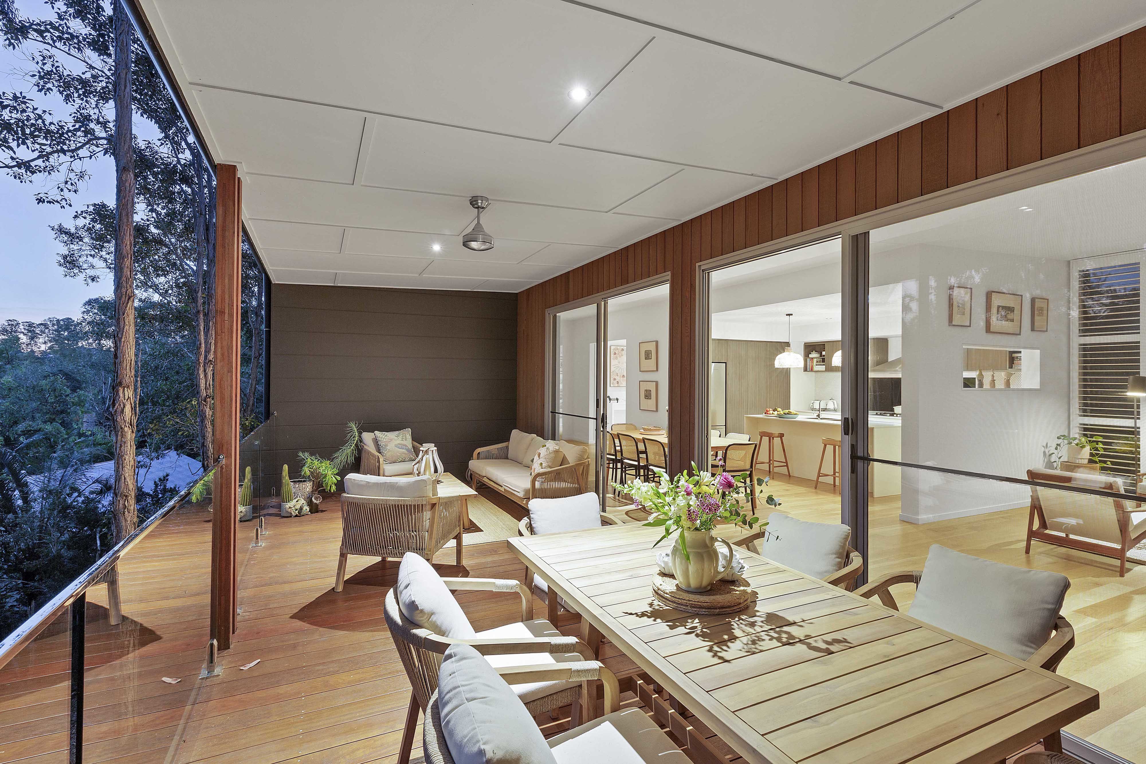 • Expansive undercover alfresco deck with glass balustrades and ‘treehouse’ like views