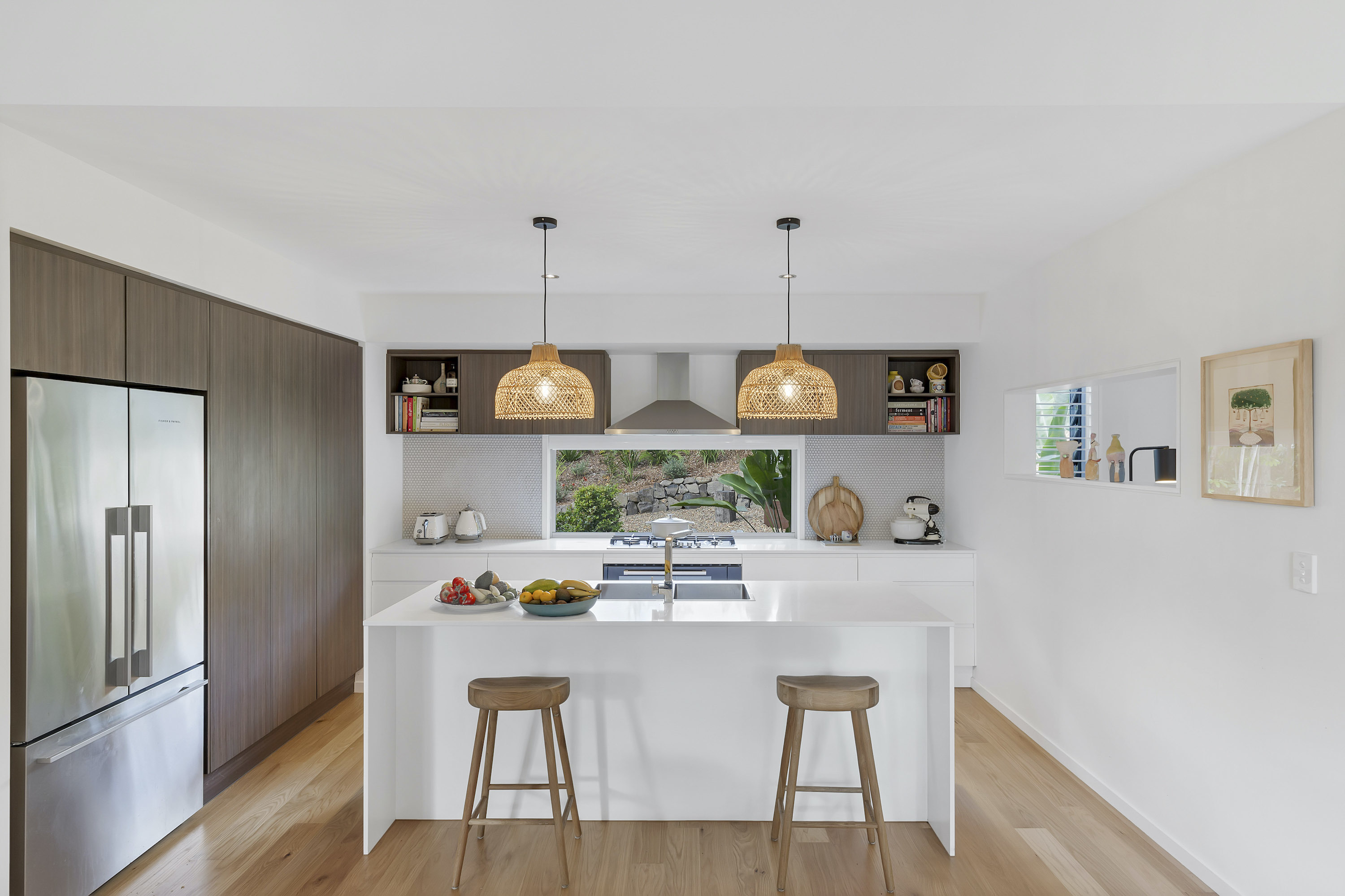 • Caesarstone kitchen bench tops, 900mm gas cooktop & extensive storage