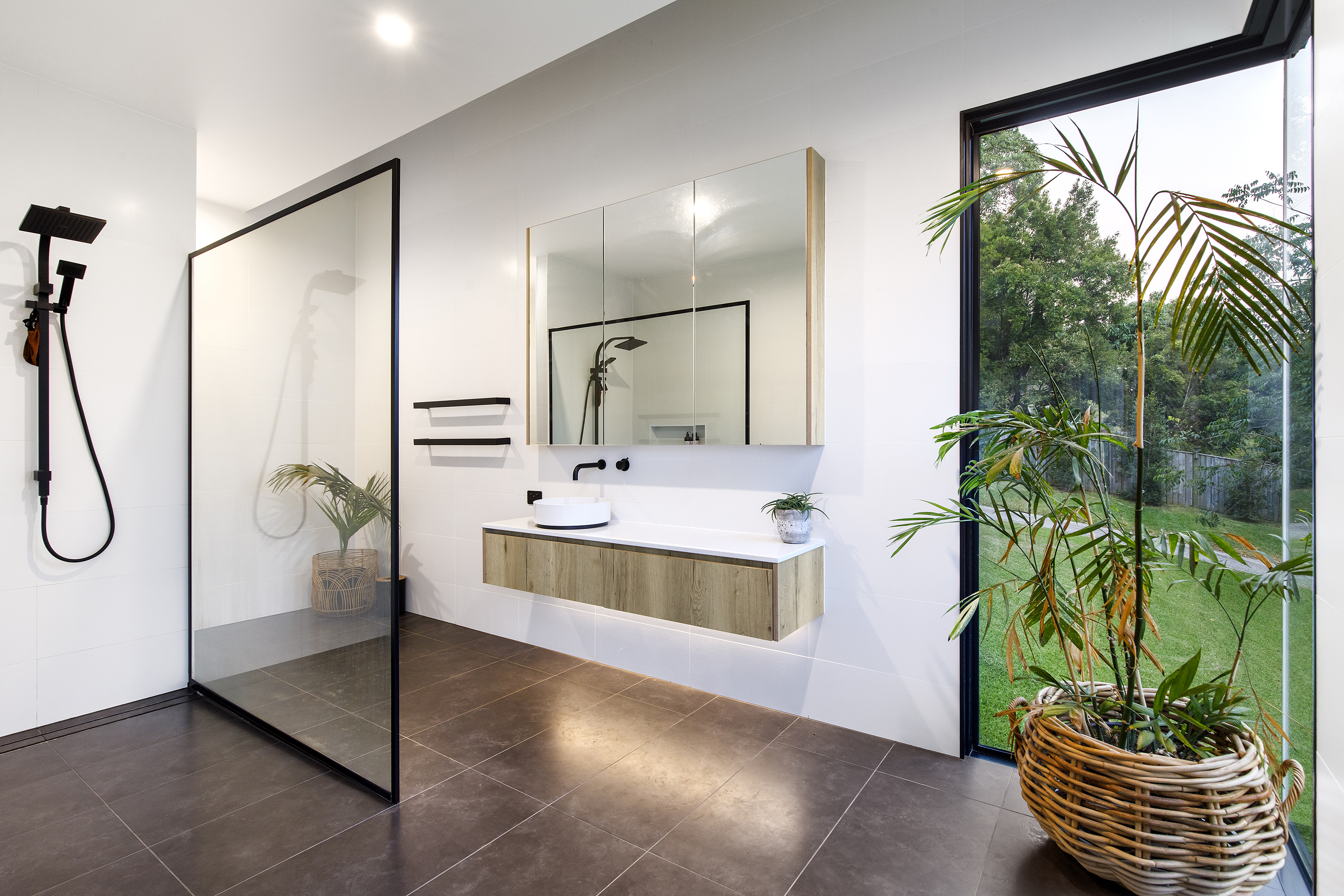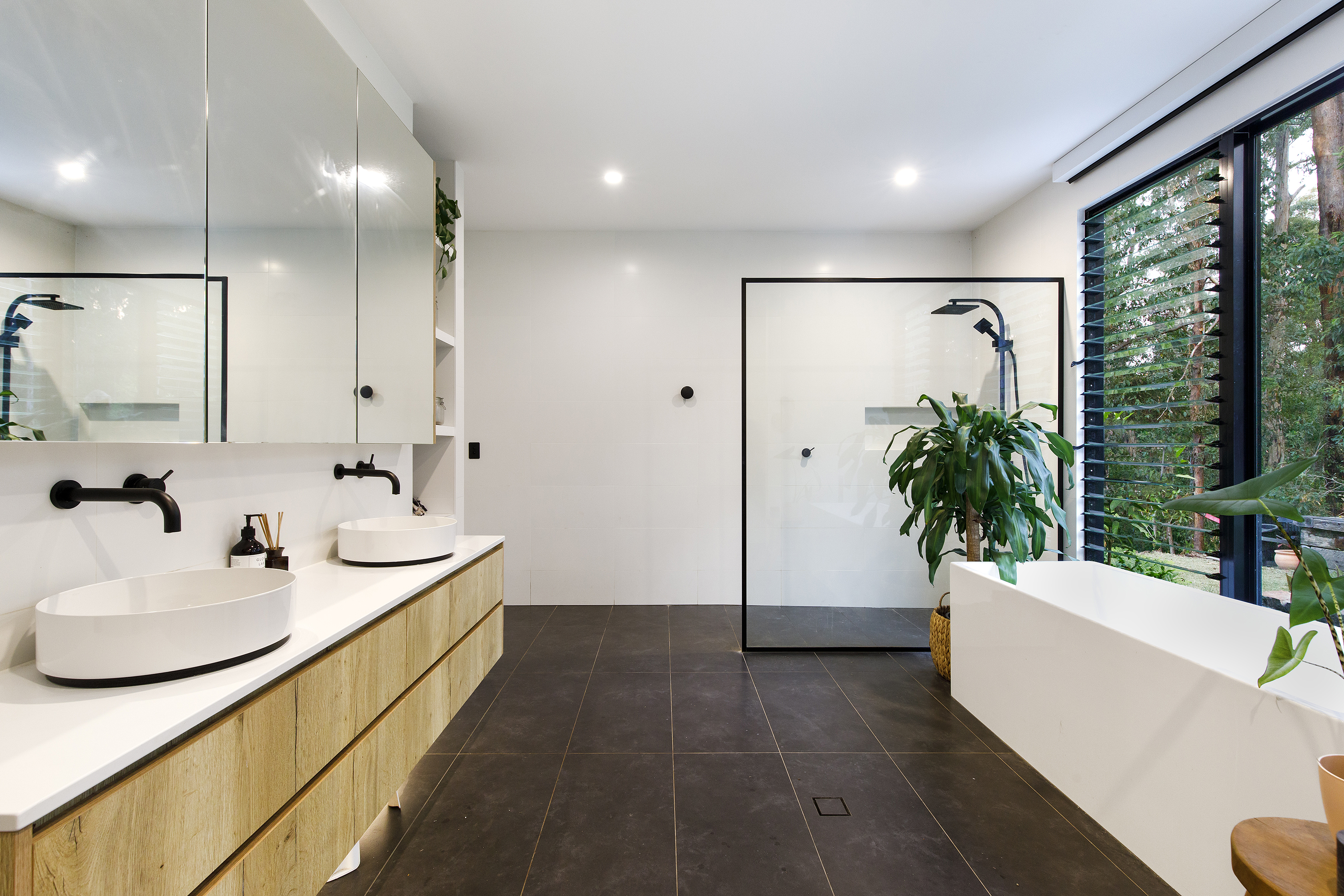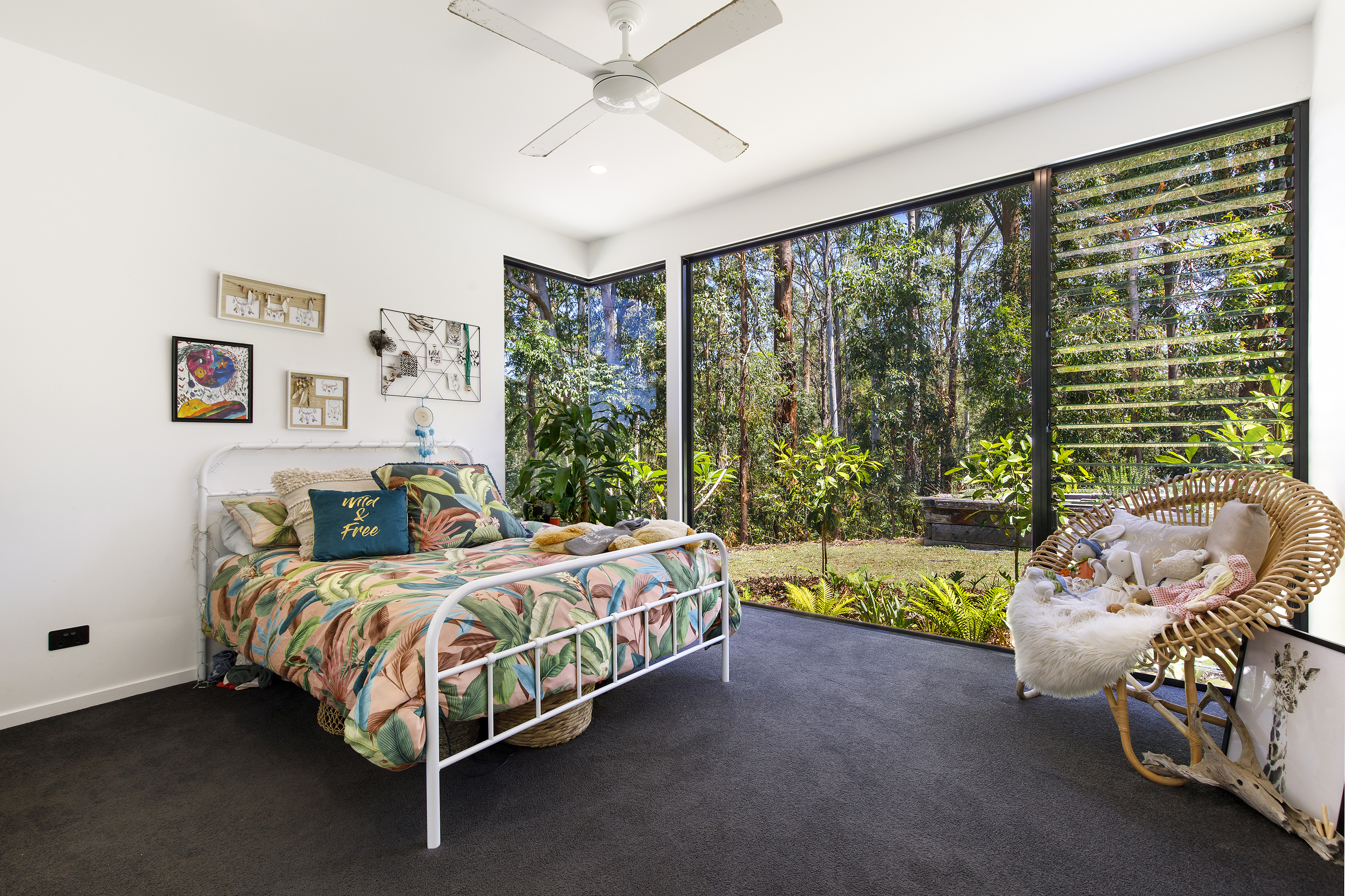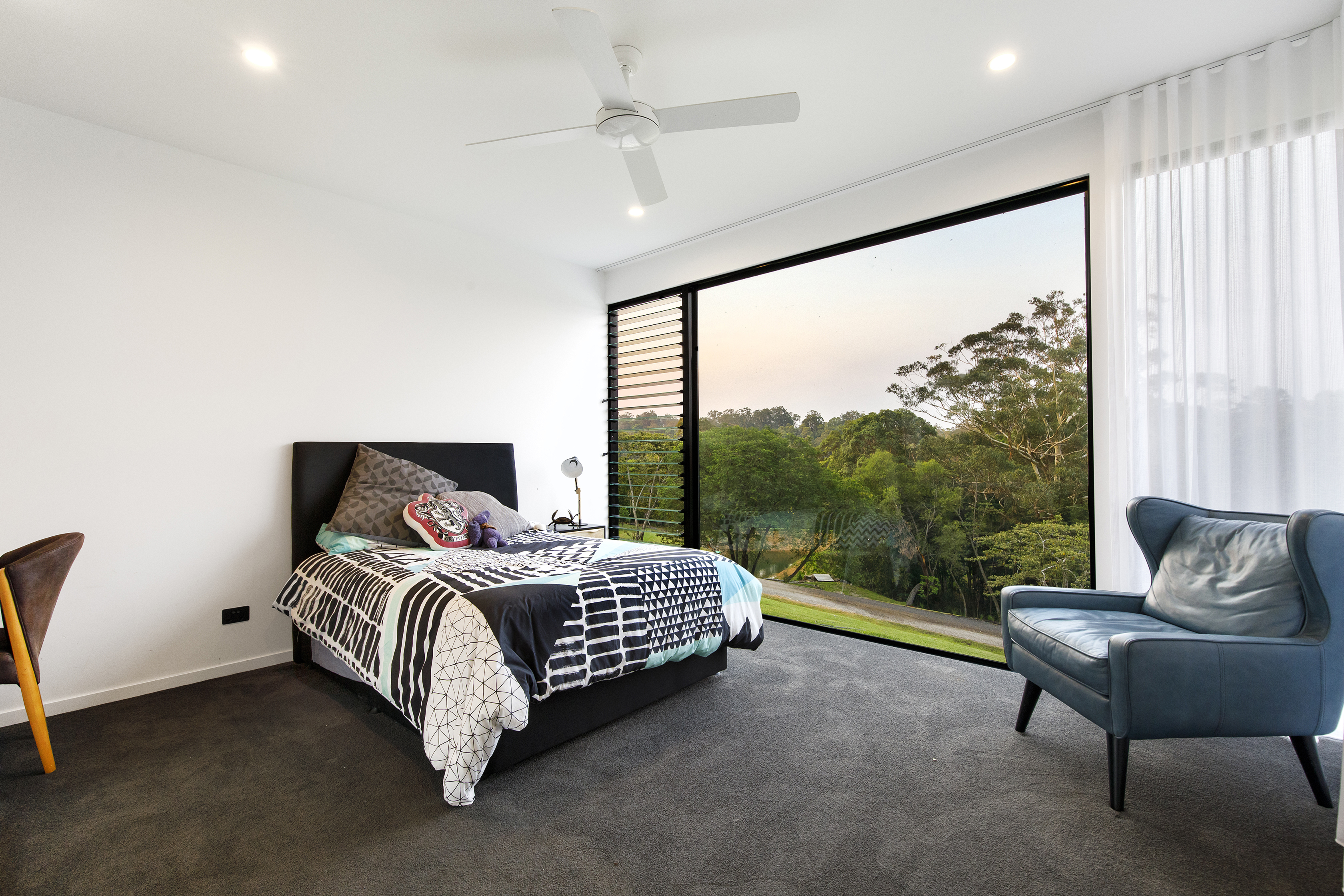 A cantilevered master suite with walk in robe and stylish ensuite capture the views from the floor to ceiling windows, bringing the bush ‘in’.