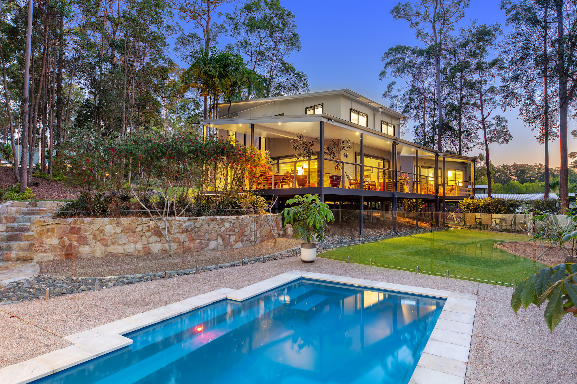 At the end of a quiet cul-de-sac and just 15 minutes into Noosa, this immaculate pavilion style home on 1 acre will impress. Designed for entertaining and relaxation, enjoy wide timber decks overlooking a sparkling saltwater pool in your own private oasis.