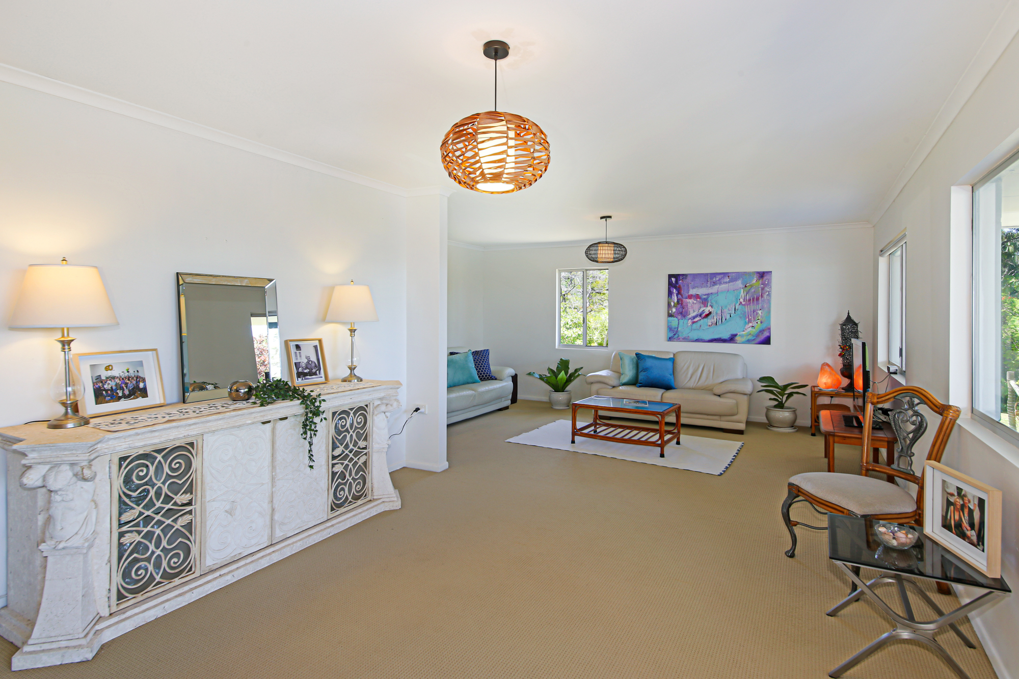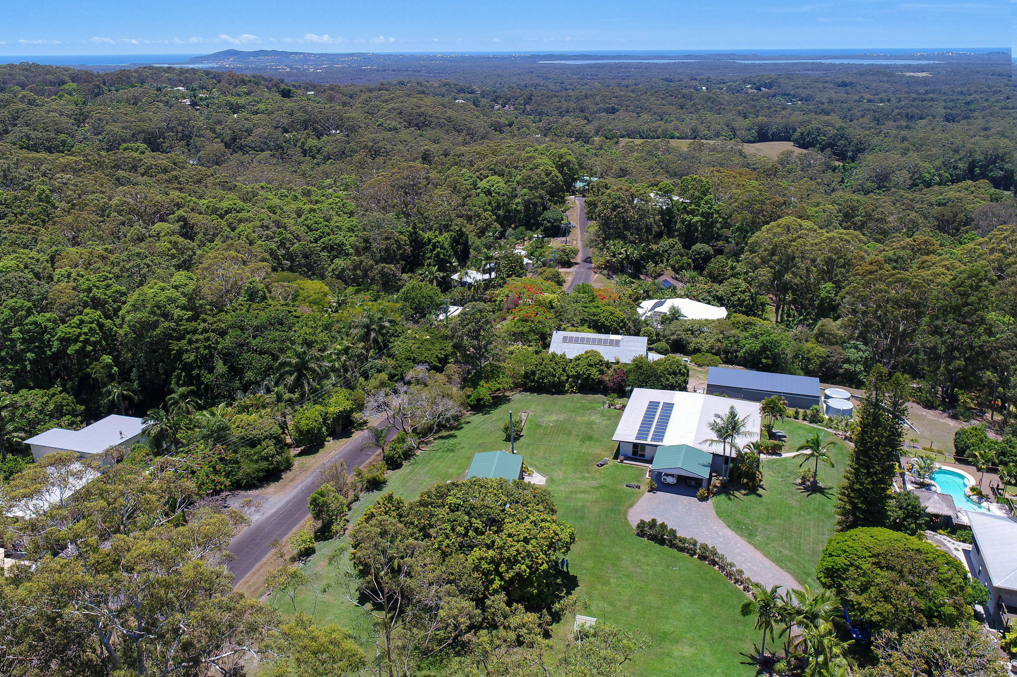 Sitting in prime position on a perfect 1.36 acres of flat useable land, this sensational property enjoys ocean & lake vistas from the top of the hill.