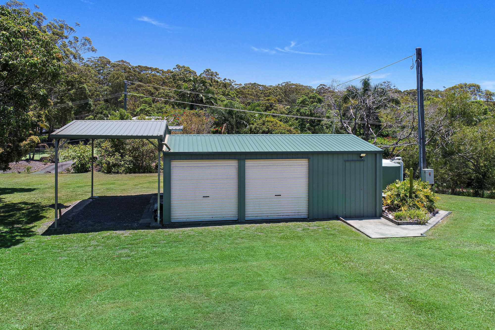 • Attached extra high roof carport with easy access to suit large caravan, boat or motorhome