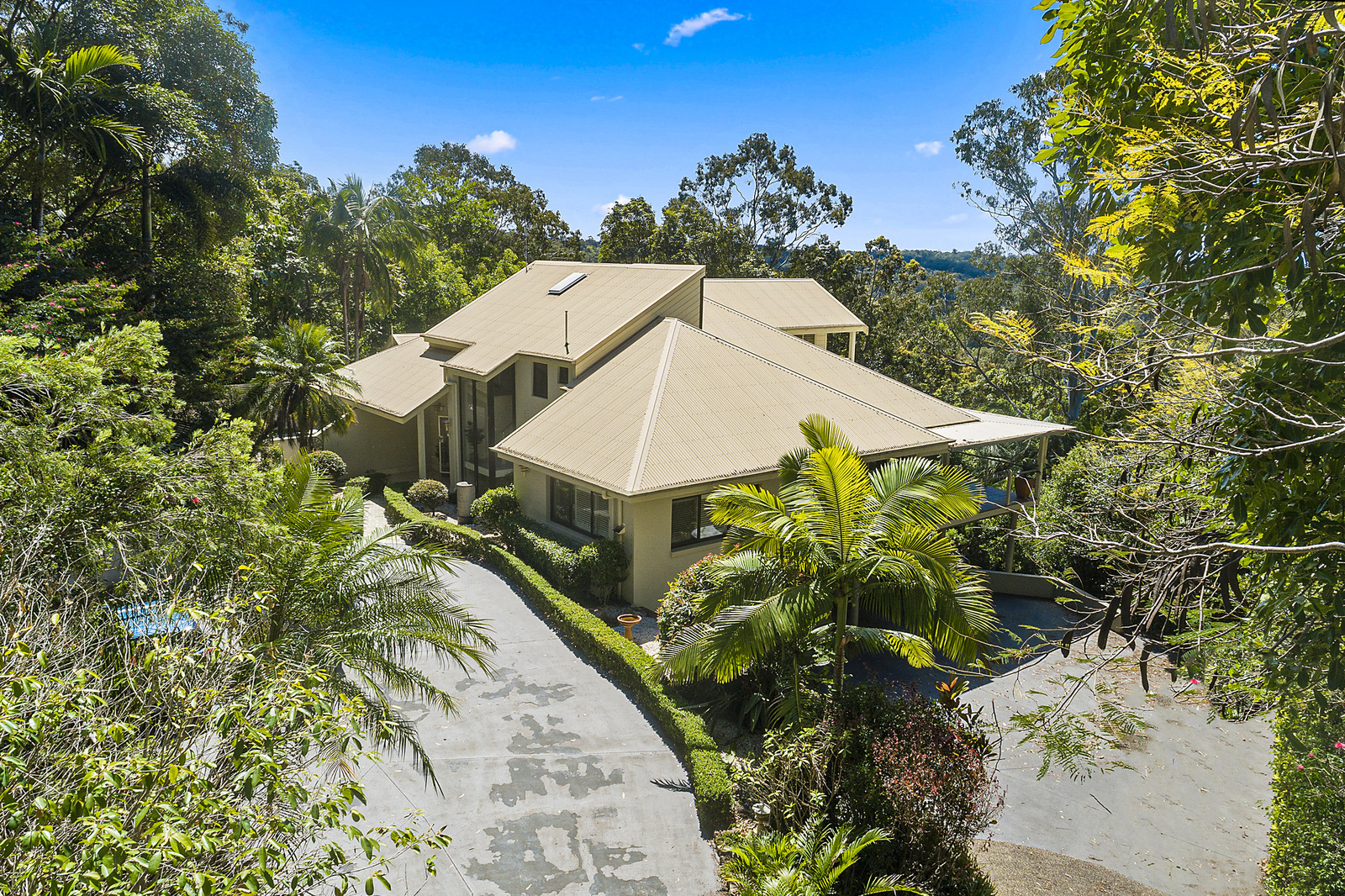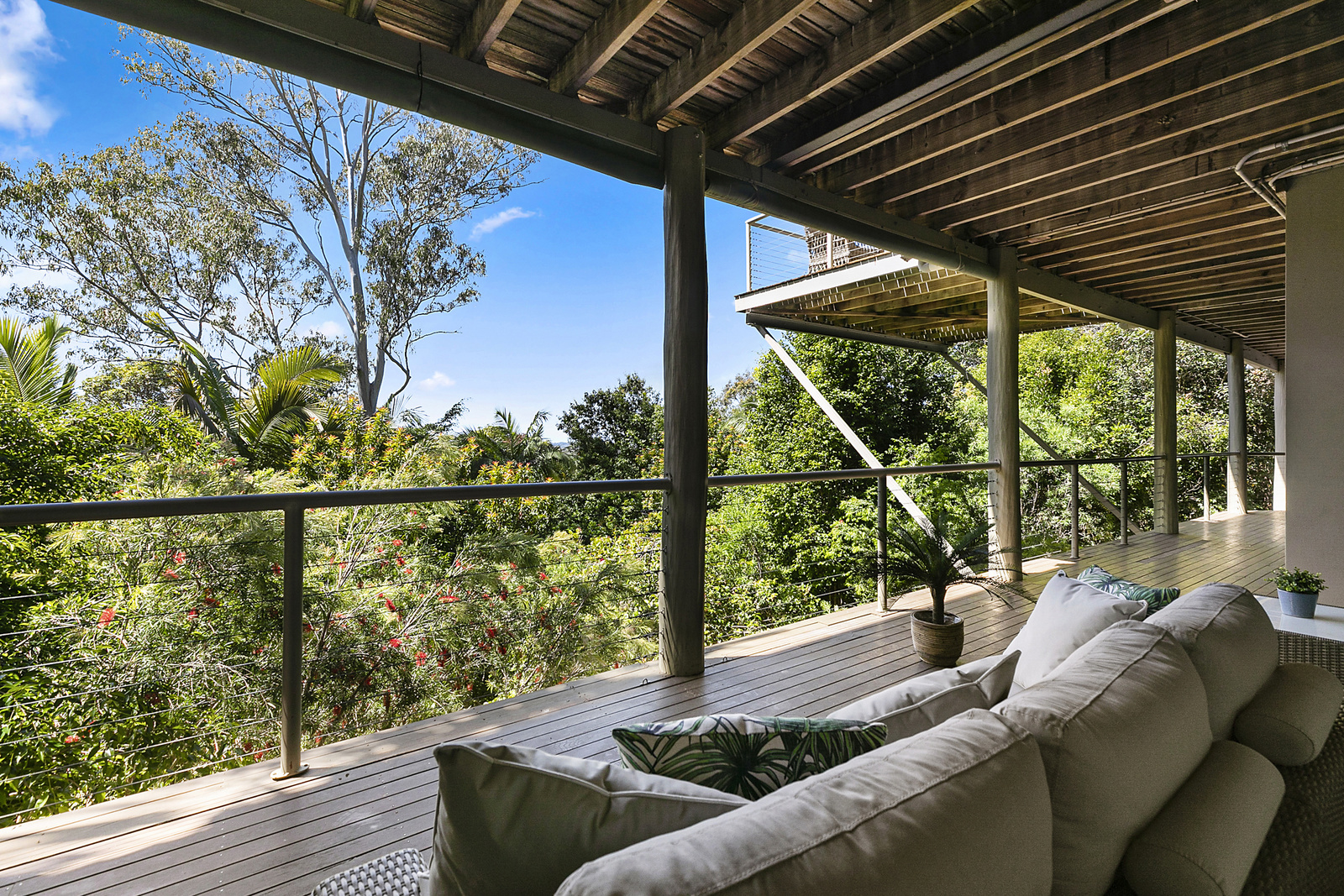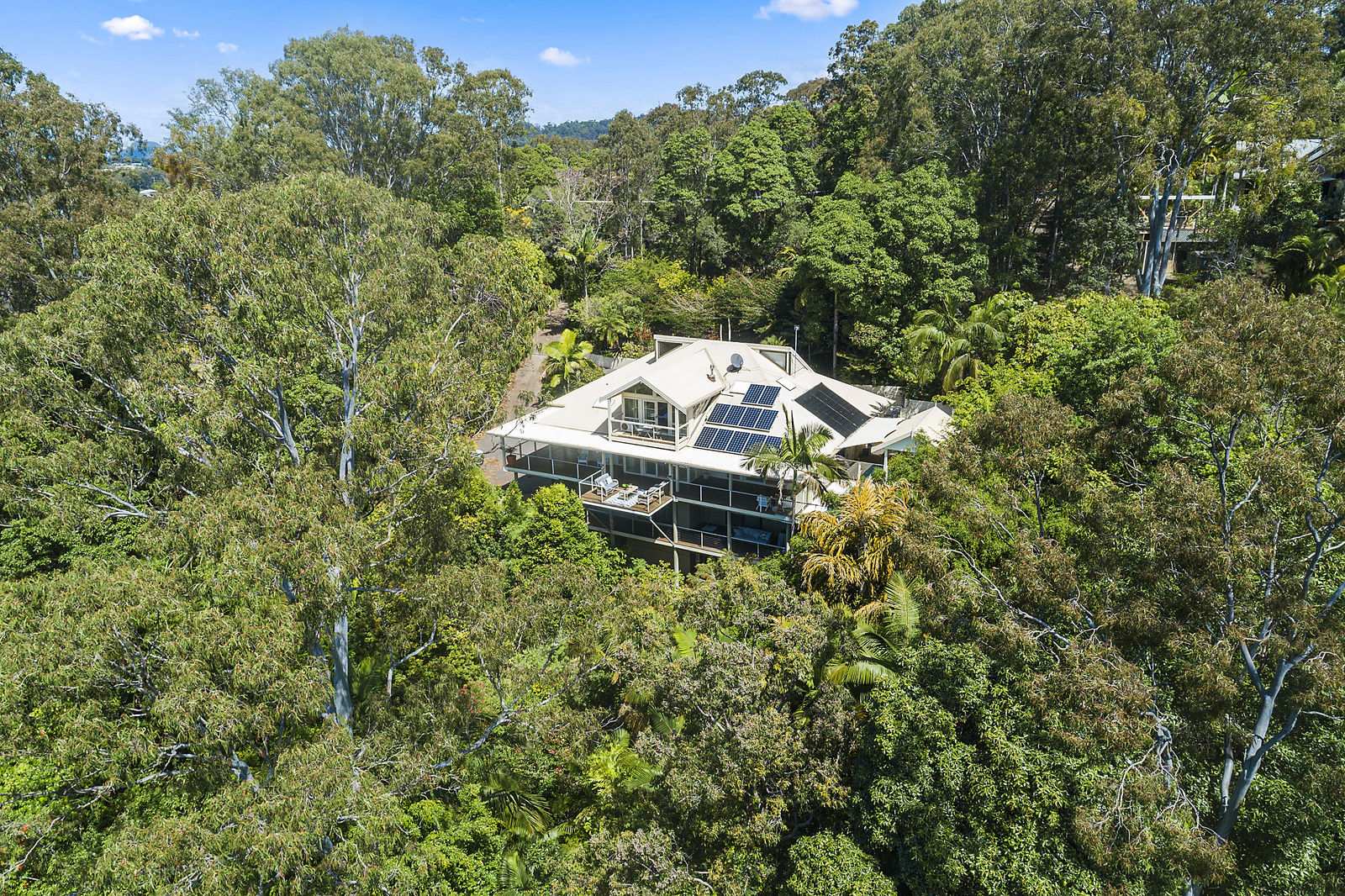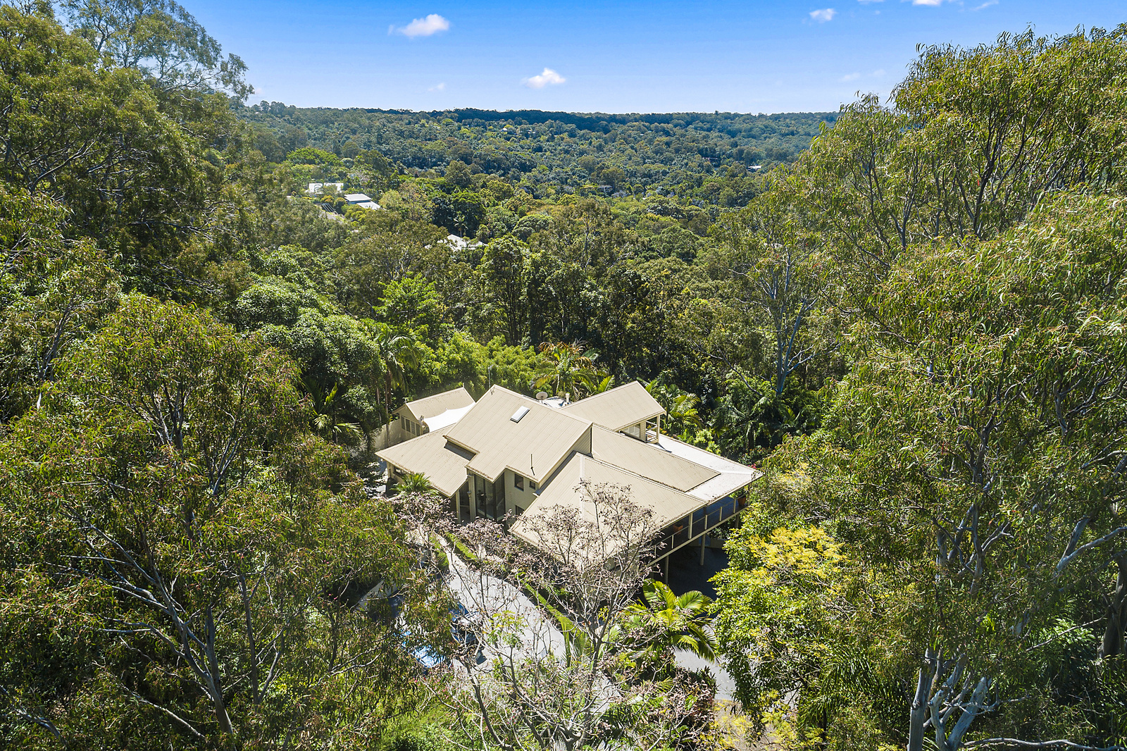 This amazing 4-5 bedroom, 3.5 bathroom multi-level home in the Golden Triangle of Noosa’s famous Hinterland, sits high and proud on this 1.9 acre block. Breathtaking views abound from multiple decks overlooking the stunning rain forest canopies of Doonan through to Lake Weyba and the Noosa river mouth.