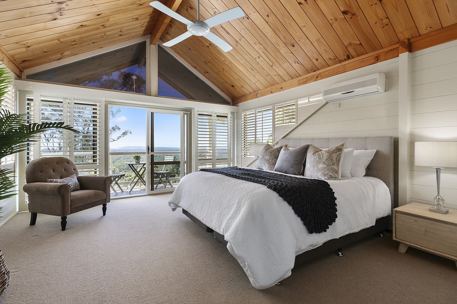 Up-stairs, a second master suite boasts a WIR, large ensuite and a separate lounge/study area. A decked balcony takes in the lush views.