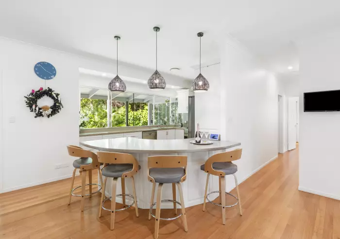 The heart of the home is the modern kitchen, featuring quality appliances, a stone benchtop, and generous storage. The adjoining living and dining areas are filled with natural light and designed for effortless family living.