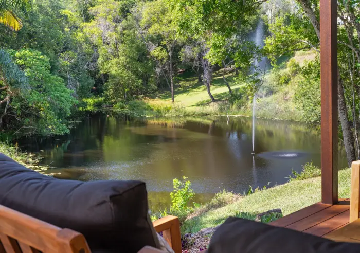 Step inside and the view immediately commands attention, with sweeping rural vistas and spectacular sunsets transforming the sky each evening. Below, a substantial freshwater dam - approximately eight metres deep and enhanced by a central fountain - forms a dramatic focal point of the landscape. A private pontoon extends gracefully over the water’s edge, creating the perfect setting for canoeing, fishing, or simply relaxing while taking in the peaceful surrounds.