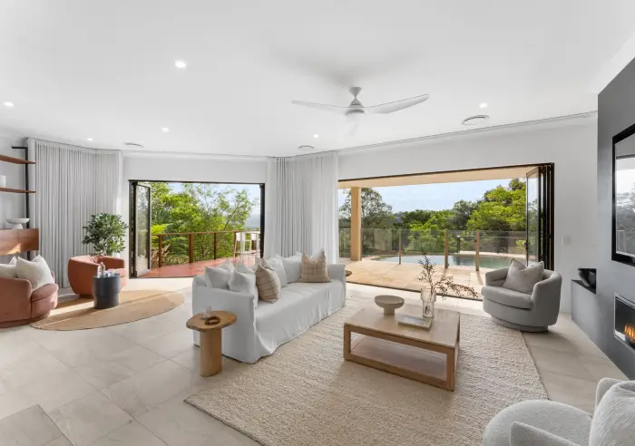 Positioned at the end of a long driveway and set well back from the road, this exceptional 1.21-hectare hinterland retreat delivers rare privacy, seclusion, elevation and breathtaking outlooks across the rolling Eumundi hills, with State Forest bordering the rear of the property. Secured behind an electric gate and fenced frontage, the setting is peaceful, secluded and immersed in nature.