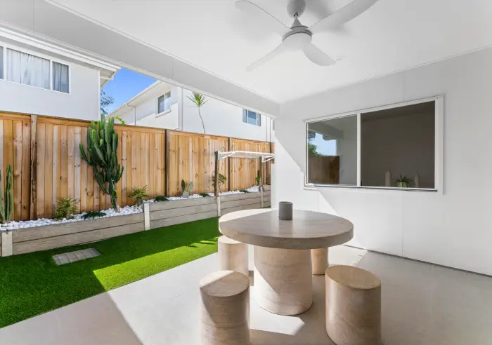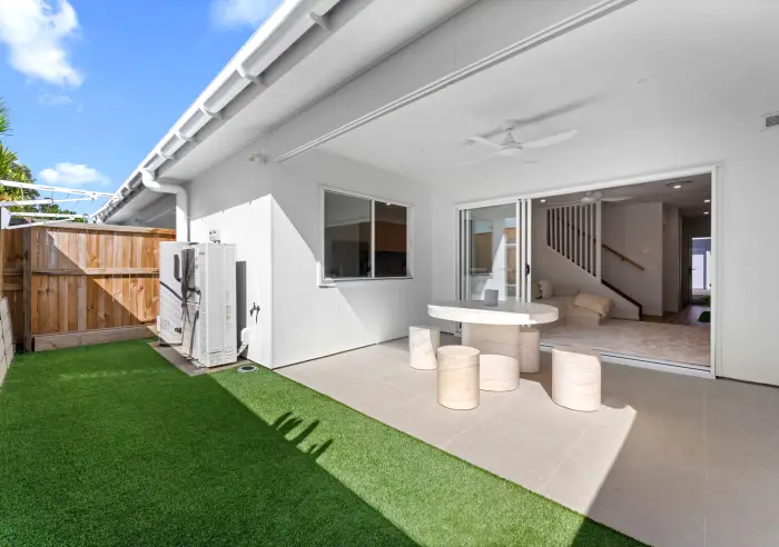 The interiors showcase high end finishes throughout, complemented by fully ducted air conditioning to ensure year round comfort. The living area flows seamlessly to a private outdoor entertaining space, complete with tiled areas and K9 artificial turf, creating a low maintenance setting ideal for pets, kids or relaxed weekends at home.
